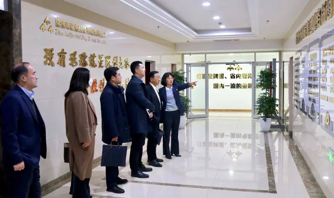 座谈交流前,张文一行来到财金集团文化墙前,了解了集团公司“金融”“类金融”“实体”三大业务版块布局,以及旗下21家子公司各类牌照业务开展情况,对财金集团快速发展取得的成绩表示祝贺。